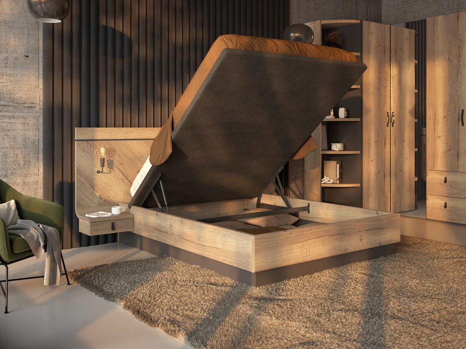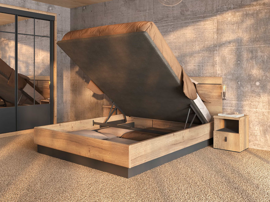 La collection OPÉRA allie le style industriel au charme naturel pour créer une chambre au caractère affirmé et actuel. Les structures en finition bois apparente, légèrement patinées, se marient avec des lignes épurées et des éléments métalliques subtils — le résultat : un univers chic et fonctionnel, résolument contemporain.