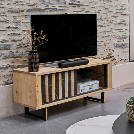 Optez pour le meuble TV en petite dimension (L122 x P45 x H56cm) si l'espace ne permet pas d'intégrer le grand modèle (L170 x P45 x 56cm). Accordez votre nouveau meuble TV avec la table basse Dune aussi disponible et ses dimensions raisonnables (L115 x P58 x H40cm).
