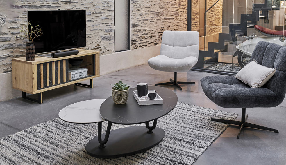 Complément : associer d'autres meubles de la collection pour créer un salon ou un séjour ouvert cohérent