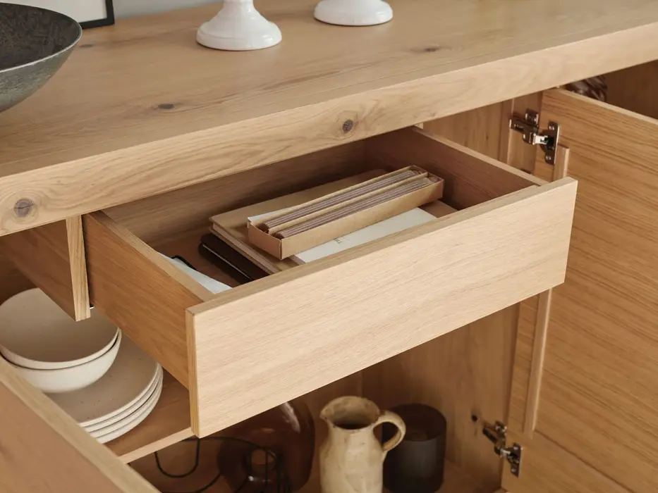 Évitez l’exposition directe au soleil : La lumière directe et prolongée du soleil peut provoquer une légère décoloration ou une différence de teinte au fil du temps. Essayez de positionner le meuble à l’abri d’une exposition directe.