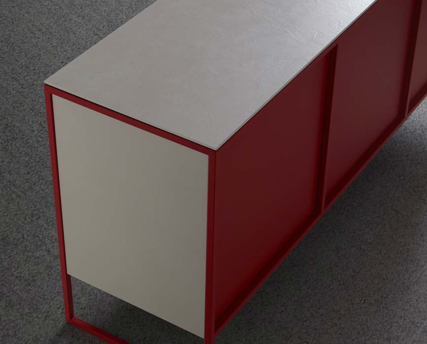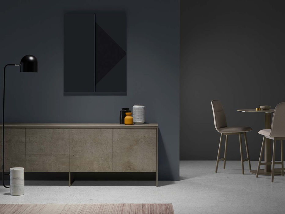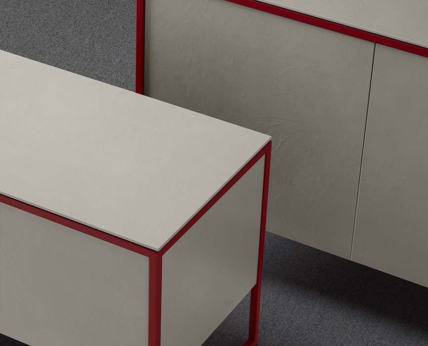 La collection TERRA se distingue par son alliance audacieuse de matériaux nobles et de lignes épurées : la céramique recouvre presque entièrement les meubles qui s’associent à une structure métal, pour un rendu moderne et épuré.