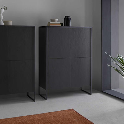 Pensée pour s’intégrer au cœur du séjour, cette collection propose une grande modularité : consoles de 100 cm et 150 cm de large, meubles TV en trois dimensions, enfilades à trois ou quatre portes, buffets hauts, et tables basses dans plusieurs formats. Sur les modèles à trois ou quatre portes, des tiroirs peuvent être ajoutés à la place de n’importe quelle porte pour personnaliser l’agencement selon vos besoins.